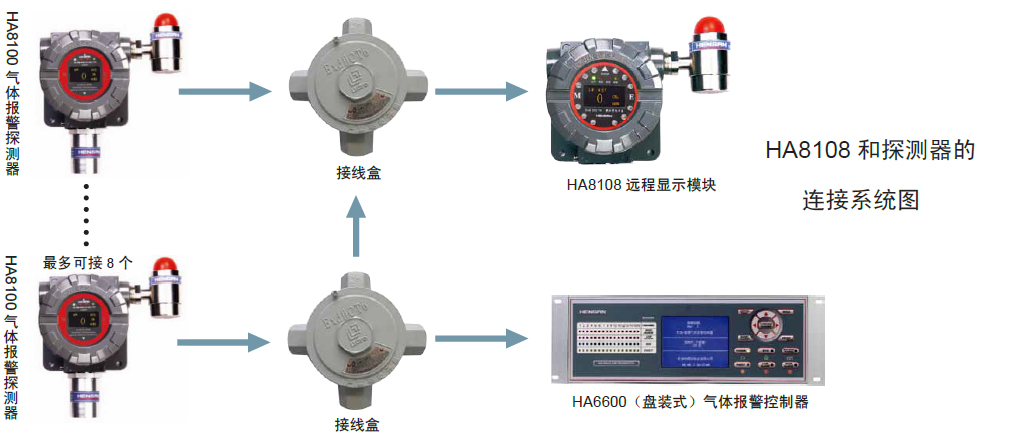 HA8108防爆型可燃有毒氣體控制器與氣體監(jiān)控系統(tǒng)的連接