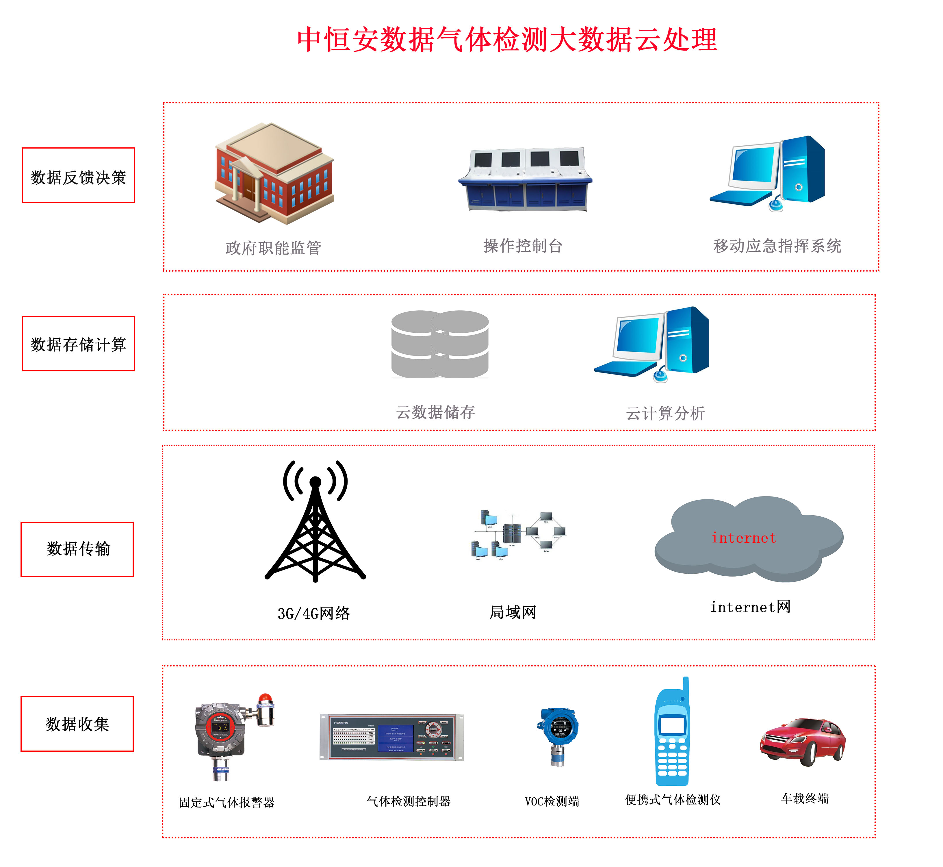 中恒安服務與工業(yè)氣體檢測行業(yè)十余年的過程中,結(jié)合自身的產(chǎn)品特點、自身技術(shù)優(yōu)勢,在當今時代的大背景下,不斷追尋技術(shù)和運營服務的創(chuàng)新,提出氣體檢測大數(shù)據(jù)云服務監(jiān)測系統(tǒng)。大數(shù)據(jù)云服務檢測系統(tǒng)是一個很好的整合資源平臺,抓住客戶的氣體檢測的運行數(shù)據(jù),在在更高的維度上,保障用戶檢測設備運行安全,提高用戶粘性。把客戶所有監(jiān)測數(shù)據(jù)在云端實現(xiàn)大數(shù)據(jù)處理。實時檢測運行狀況。同時對運行數(shù)據(jù)與用戶總體數(shù)據(jù)趨勢、歷史數(shù)據(jù)進行比對,對設備運行趨勢進行預判,做到防患于未然。大數(shù)據(jù)云服務的應用,歸根結(jié)底是對趨勢的預測。