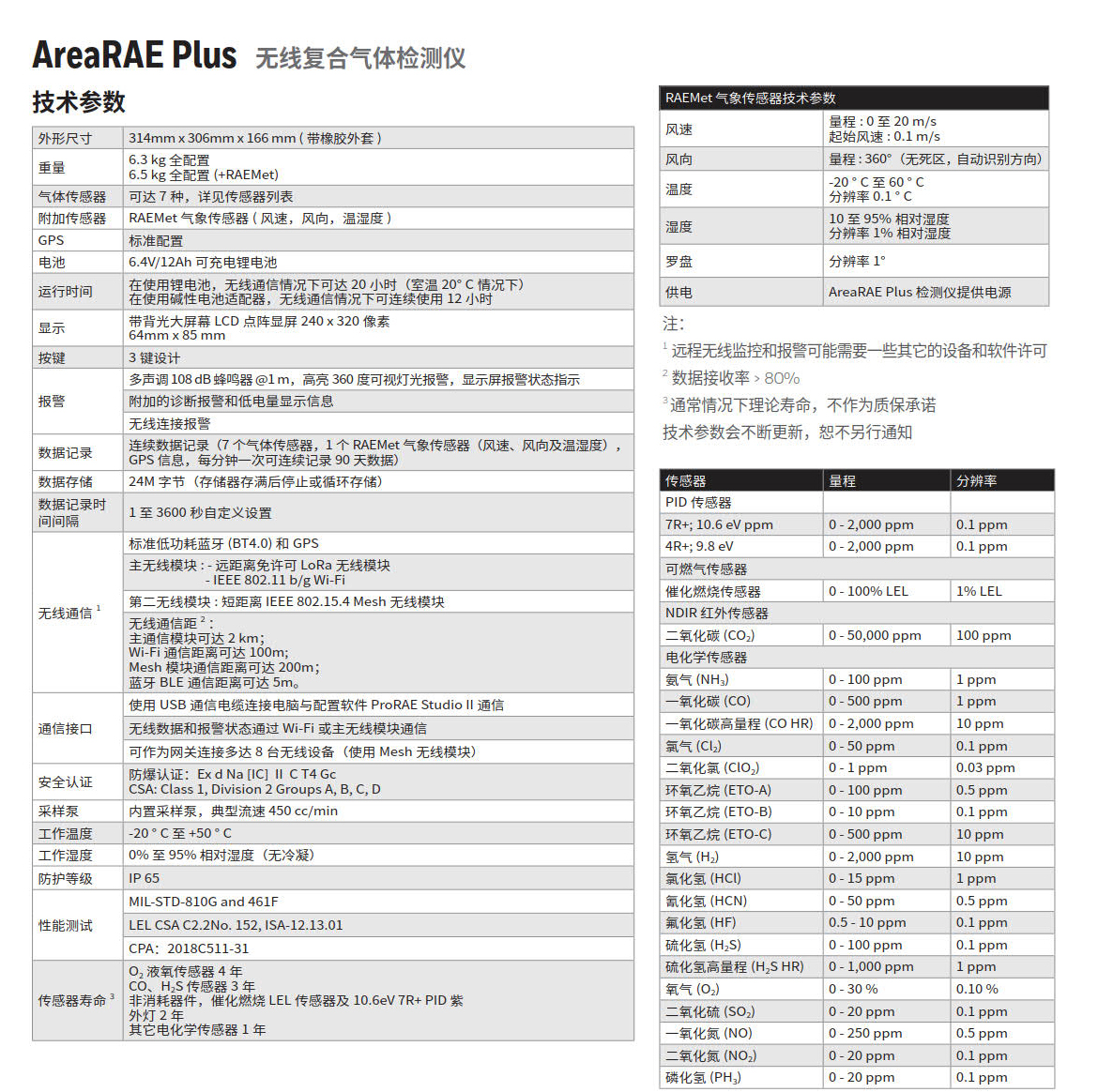 AreaRAE Plus 無(wú)線復(fù)合氣體檢測(cè)儀是一款具有遠(yuǎn)程通信能力的可移動(dòng)區(qū)域監(jiān)測(cè)儀,它可同時(shí)檢測(cè)有毒有害氣體、可燃?xì)怏w、揮發(fā)性有機(jī)化合物和影響被測(cè)氣體擴(kuò)散速度、方向等的氣象數(shù)據(jù)。無(wú)論用戶需要通過(guò)監(jiān)控警戒線保護(hù)特定區(qū)域,在生產(chǎn)設(shè)備維護(hù)中保護(hù)現(xiàn)場(chǎng)工作人員,還是在應(yīng)急搶險(xiǎn)中保護(hù)一線搶險(xiǎn)人員的安全,AreaRAE Plus無(wú)線復(fù)合氣體檢測(cè)儀會(huì)及時(shí)通過(guò)本地聲光報(bào)警器發(fā)出警報(bào)。此外,它還可與霍尼韋爾的遠(yuǎn)程監(jiān)控軟件配合使用,在安全地區(qū)實(shí)時(shí)查看現(xiàn)場(chǎng)儀表的讀數(shù)和狀態(tài)信息。