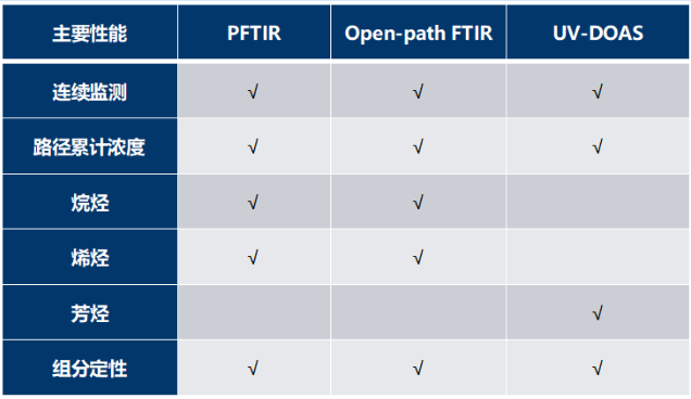 被動(dòng)式傅立葉變換紅外光譜技術(shù)(PFTIR)、開放光路長(zhǎng)光程傅立葉變換紅外光譜技術(shù)(OP-FTIR)、開放光路長(zhǎng)光程紫外差分吸收光譜技術(shù)(UV-DOAS)等。