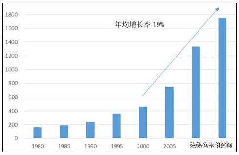 圖表 1:1980年以來(lái)中國(guó)工業(yè)源VOCs排放總量變化趨勢(shì)(萬(wàn)噸)