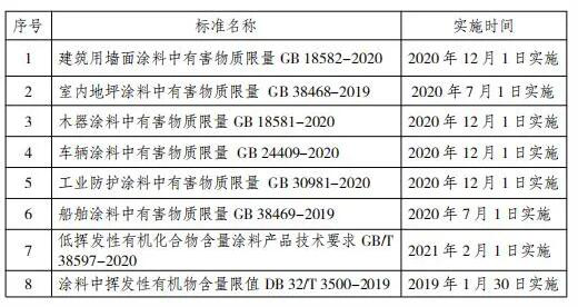 國(guó)家及我省涂料產(chǎn)品標(biāo)準(zhǔn)與實(shí)施時(shí)間