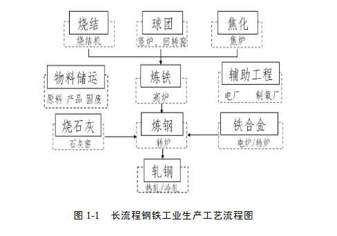 1、主要生產(chǎn)工藝:聯(lián)合焦化、燒結(jié)、球團(tuán)、煉鐵、煉鋼、軋鋼和公共單位(發(fā)電、供熱)等。