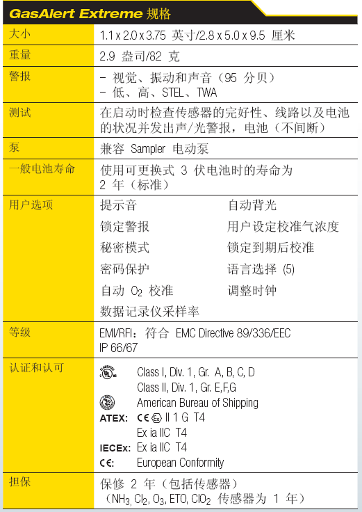 GasAlert Extreme 的其它特點包括: